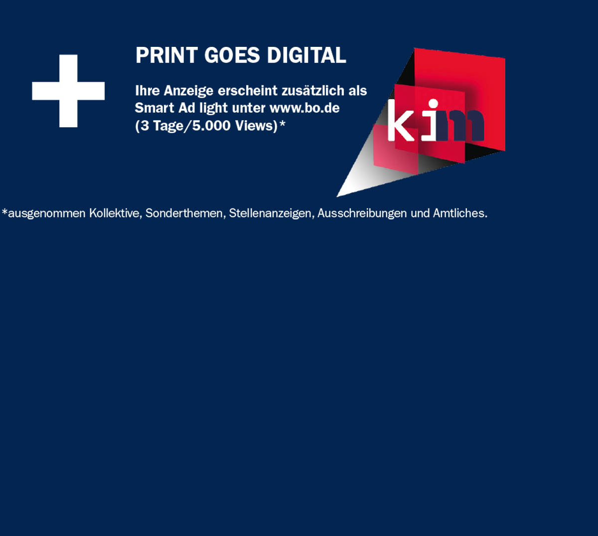 | Öffentliche Ausschreibungen (plus 10% Aufschlag auf Bruttopreis für Veröffentlichung auf bo.de) | -50 % | +10 % |